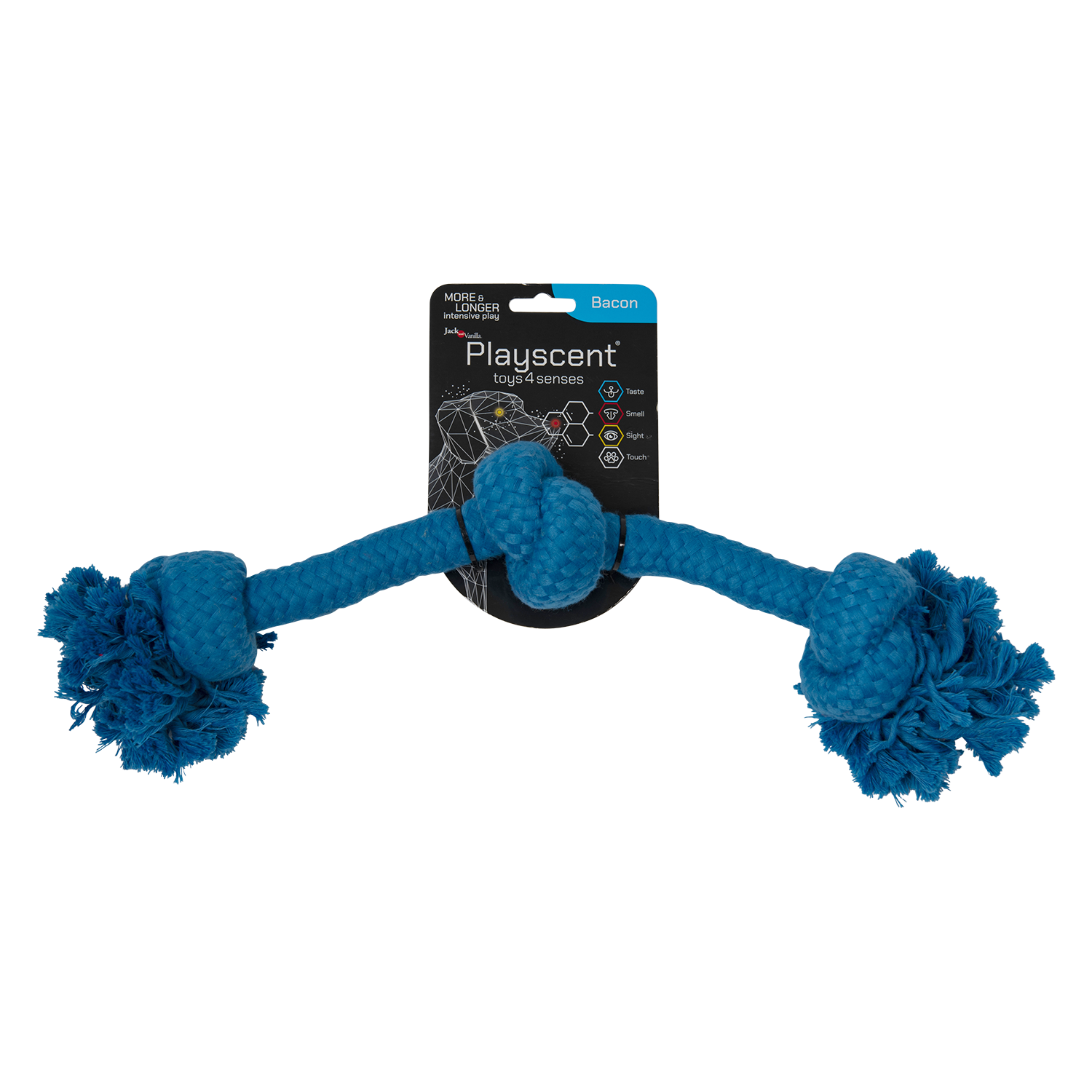 Verrijkt met Bacon Smaak: Het Playscent Touw is doordrenkt met een bacon aroma, wat het extra aantrekkelijk maakt voor uw hond en hun zintuigen prikkelt tijdens het spelen.
