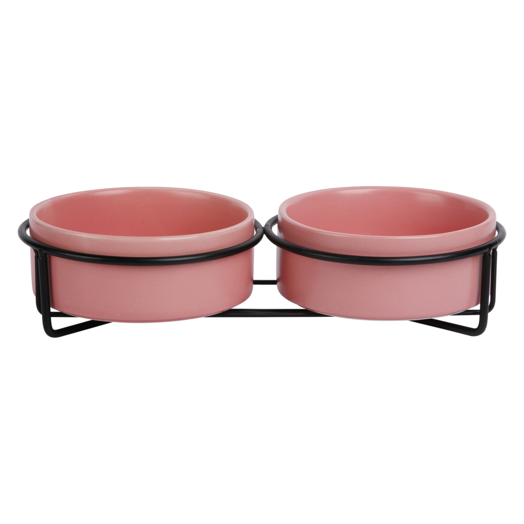 Jack and Vanilla BON APPETIT Dubb Keram Voerbak Metalen Stand Roze-2×850